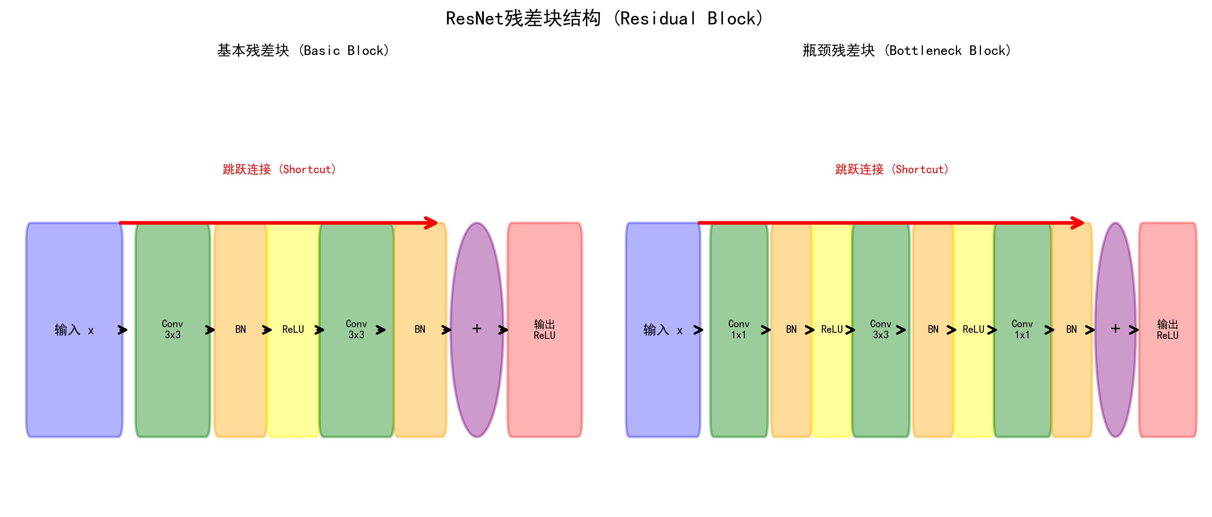 - 能从零实现 ResNet 的 BasicBlock 和 Bottleneck