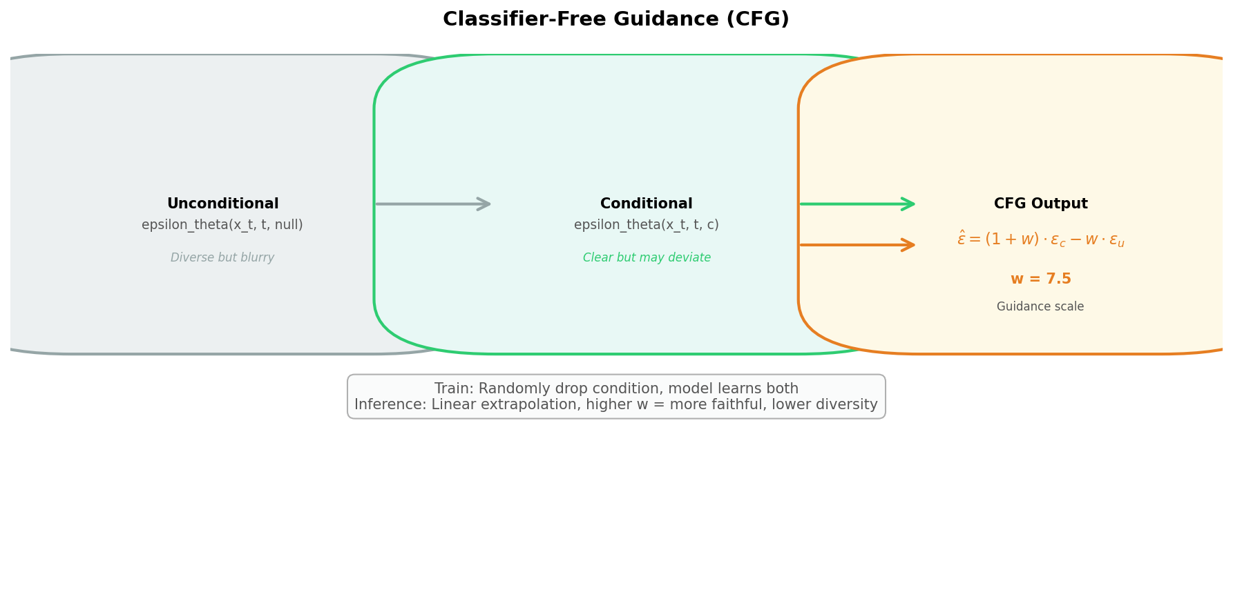 - CFG:Ho & Salimans, "Classifier-Free Diffusion Guidance" (NeurIPS Workshop 2021)