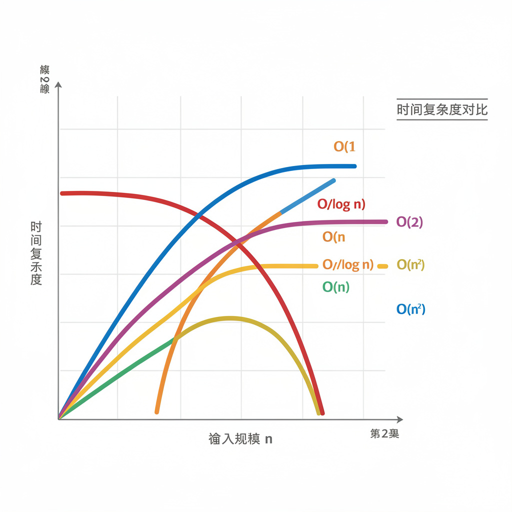复杂度是衡量算法效率的指标,回答两个核心问题: - 时间复杂度:数据量变大时,程序运行时间增长多少? - 空间复杂度:数据量变大时,程序内存占用增长多少?