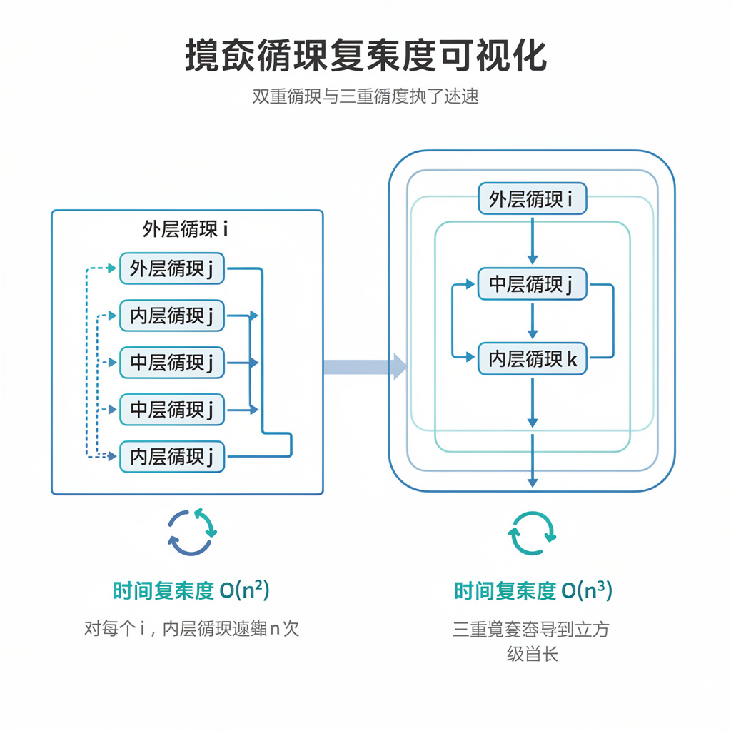 图:嵌套循环的执行模式,展示O(n²)复杂度的来源