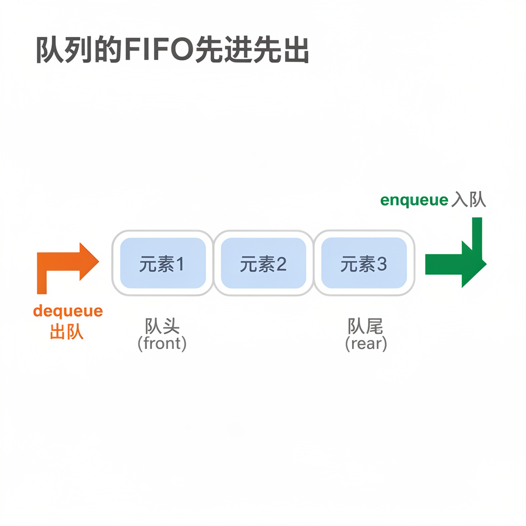 ✅ 队列的特点: - 先进先出(FIFO) - 两端操作:队首出队、队尾入队 - 入队和出队都是O(1)